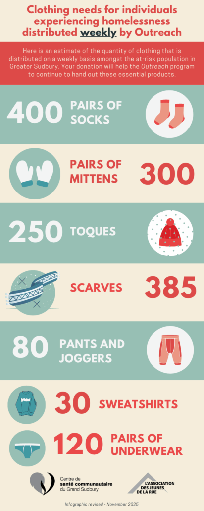 In partnership with L’Association des jeunes de la rue, Le Centre de santé communautaire du Grand Sudbury invites you to participate in their Drop Off Your Donation 2025 campaign, which aims to collect funds to help the at-risk community in Greater Sudbury.